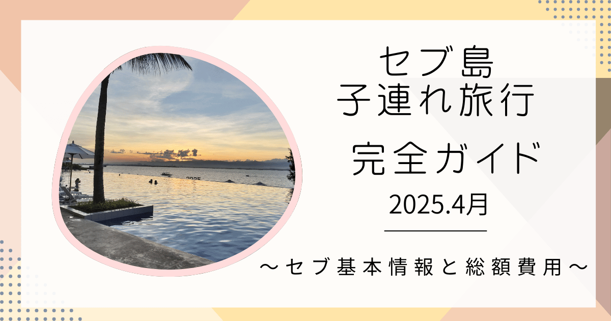 時差もわずか1時間というセブ島は、移動の負担が少ないわりに「異国情緒」をたっぷり味わえる、子連れにとって“ちょうどいい”目的地でした。