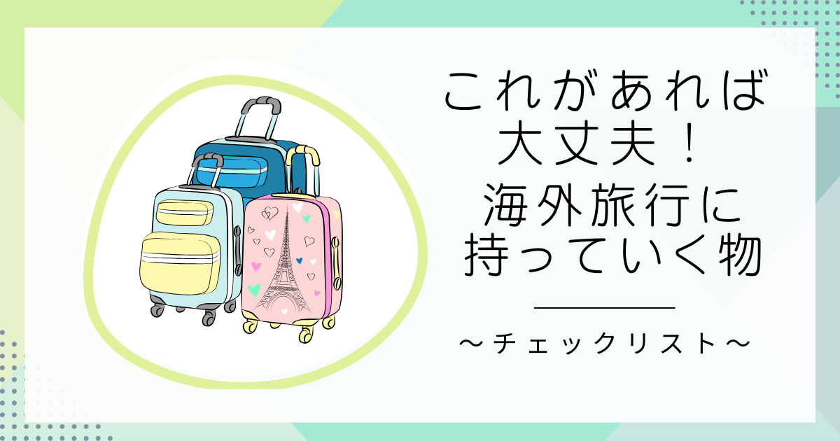 海外旅行が初めての方や、久しぶりに海外へ行く方にとって、「何を持っていけばいいのか?」は一番悩むポイントですよね。
